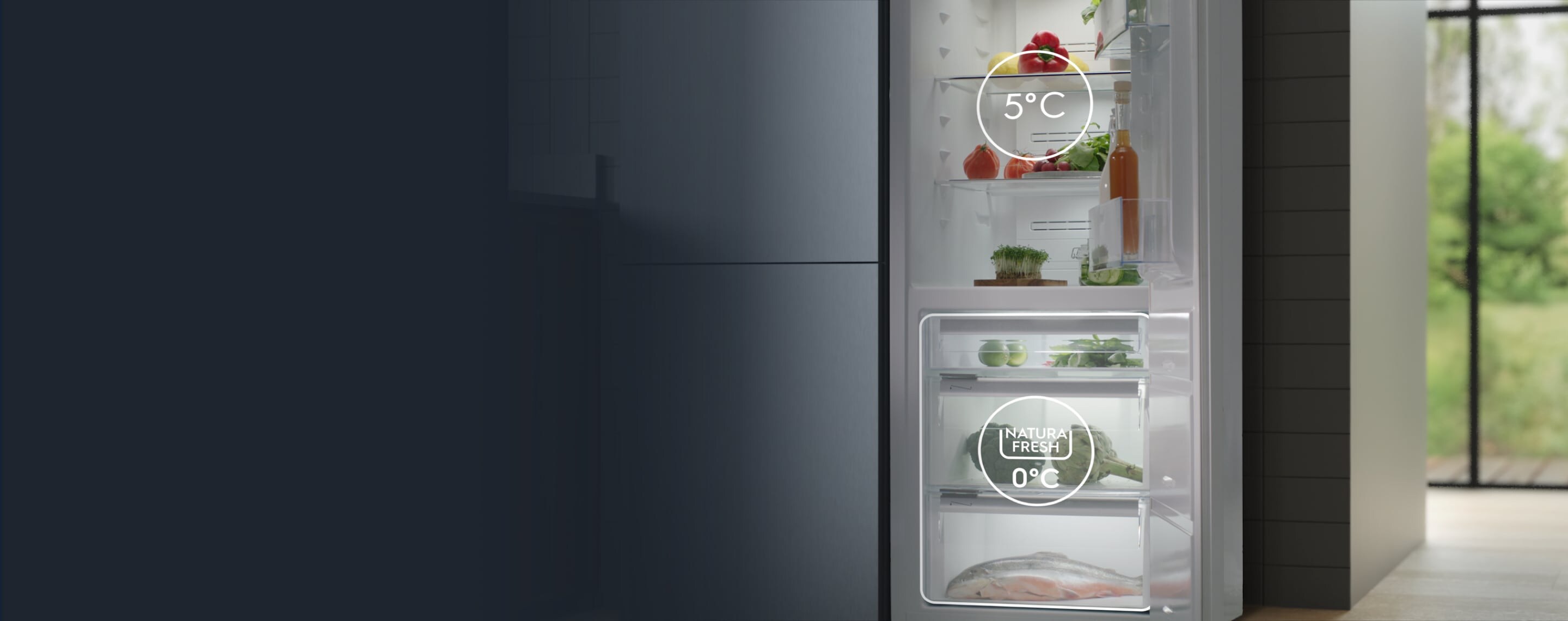 Naša ponudba hladilnikov z zamrzovalnikom je optimizirana za enostavno in trajnostno zdravo prehranjevanje, tako da lahko zaščitite tisto, kar je pomembno – vašo hrano, vaše zdravje in planet. Kakovost hrane ščitimo tako, da zagotavljamo 3 ključne elemente konzerviranja – stabilno temperaturo, pravo vlažnost in zaprto okolje.
