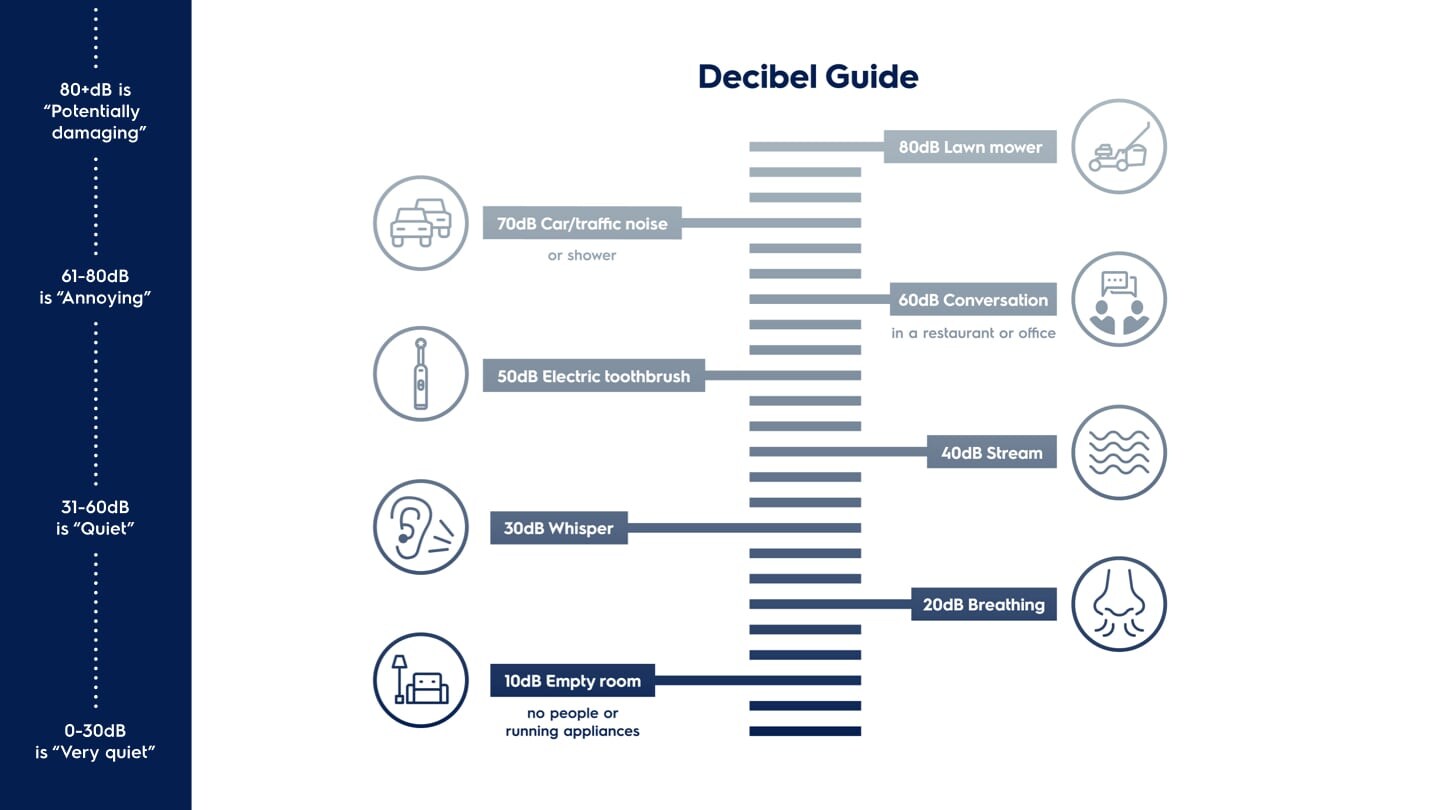 Za prijetno kuhinjsko okolje brez hrupa izberite hladilnik z zamrzovalnikom z nizko vrednostjo decibelov (dB). Raven zvočne moči hladilno-zamrzovalnih aparatov je odvisna od več dejavnikov, kot so velikost, teža, vibracije, cevi in kompresor, ki se lahko med različnimi modeli razlikujejo. Electrolux ponuja precej hladilno-zamrzovalnih aparatov med 33-35 dB (A).