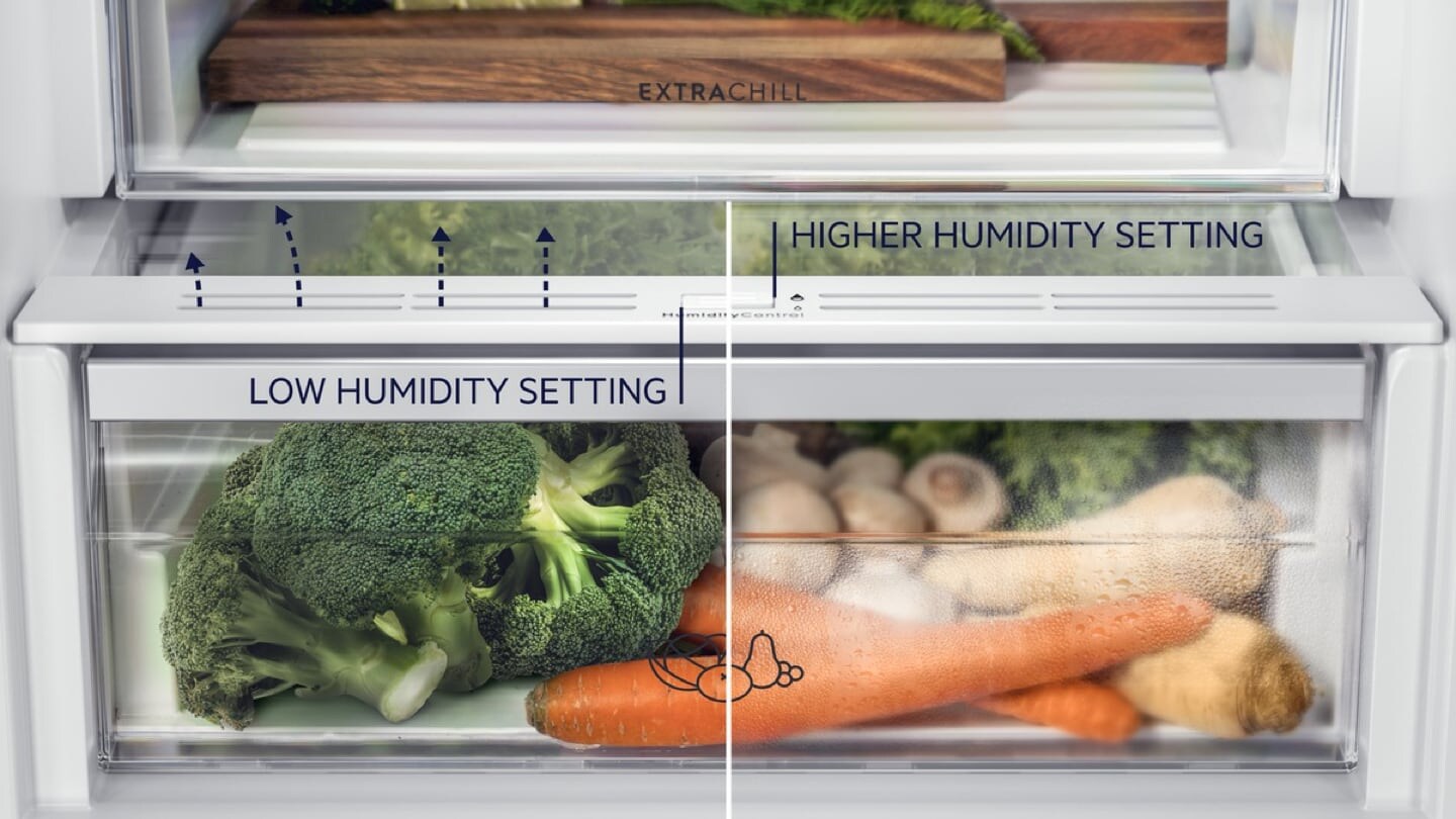 Neodvisni predelki hladilnika 900 NaturaFresh 0°C ustvarjajo posebne pogoje za občutljive sestavine. Vlažnost je mogoče prilagoditi, predelke pa lahko hranite pri 0°C, hladnejše od hladilnika.