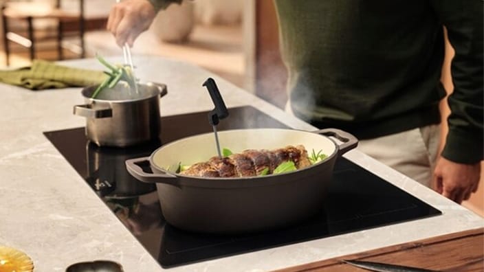 900 SensePro brezžična sonda za hrano spremlja temperaturo hrane in samodejno prilagodi nastavitve kuhalne plošče za popolno segrevanje. Uživajte v preprostem in natančnem kuhanju – idealno za Sous Vide, poširanje, dušenje, kuhanje ali cvrtje.