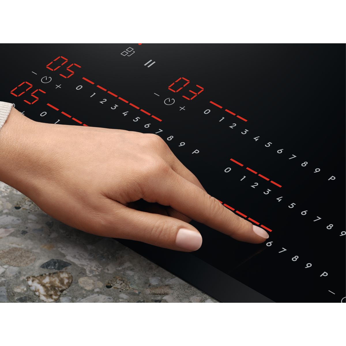 Indukcijska kuhalna plošča 600 Bridge vam omogoča združitev dveh ločenih kuhališč v eno veliko površino. S samodejno prilagoditvijo nastavitev temperature in časa vam omogoča, da kar najbolje izkoristite žar plošče ali posode za pečenje.