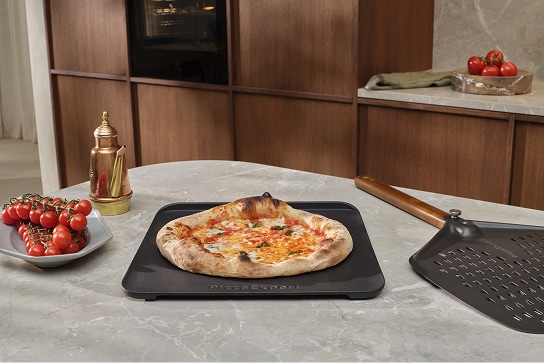 Ne, pečica PizzaExpert vas po korakih vodi, da pripravite pico kot iz restavracije. V aplikaciji so podrobna navodila za pripravo popolnega testa in paradižnikove omake, zaslon na dotik pa vam bo sporočil, na katero višino postaviti litoželezni pekač, in vas obvestil, kdaj vstaviti pico in jo vzeti ven.