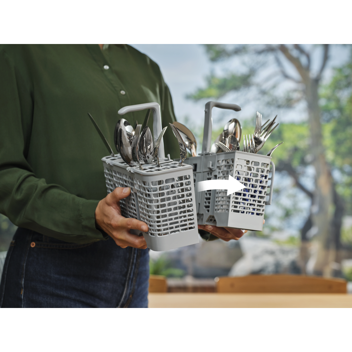 Vsestranske košare z držali za kozarce in dvodelno košaro za jedilni pribor