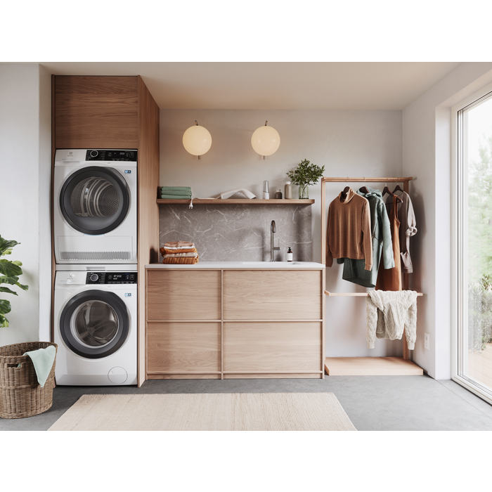Postavitev vašega sušilnega stroja na pralni stroj je izvrsten način za prihranek prostora. Komplet za namestitev vam daje več možnosti za hrambo, opravila in druge namene in naredi vašo pralnico bolj prostorno.