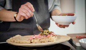 Fill the focaccia with roast beef, artichokes and complete with the sliced almonds.