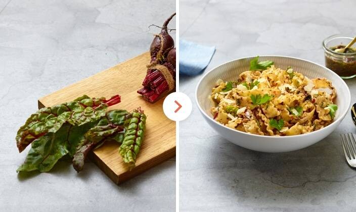 2Pesto iz listov rdeče peseListi rdeče pese so zelo hranljivi in odličen vir vitaminov A in K. Na hitro jih zblanširajte, nato pa zmešajte z baziliko, strokom česna, pinjolami, olivnim oljem in ščepcem soli, da naredite blag in slasten pesto.