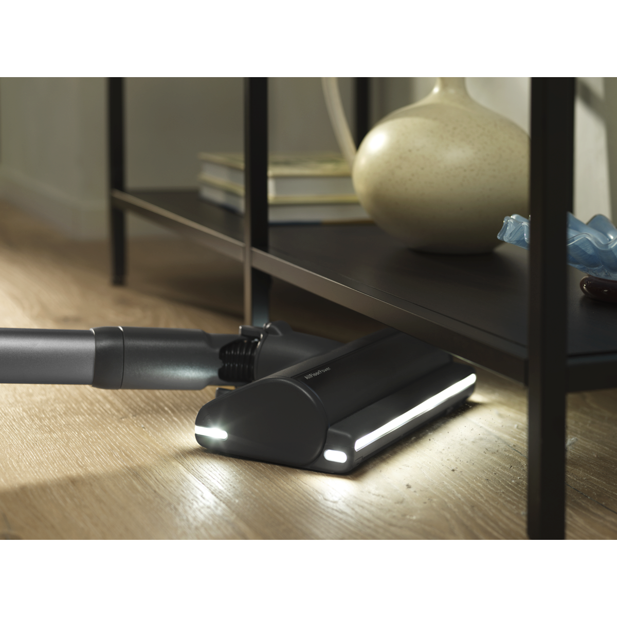 Učinkovitost, ki traja. Brezžični sesalnik 900 z nastavkom AllFloor Power je edini brezžični sesalnik, ki združuje najdaljši čas delovanja v svojem razredu z do 100-% pobiranjem prahu.*